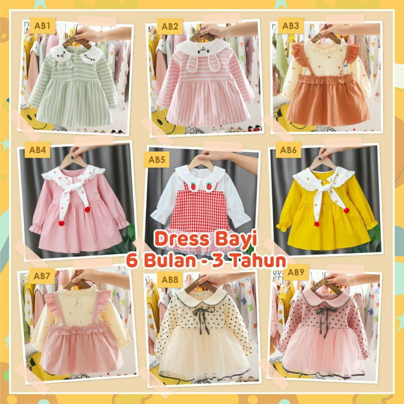Dress Gaun Anak Bayi Perempuan Import Motif Elegan Cantik Lucu Usia 6 bulan - 3 tahun
